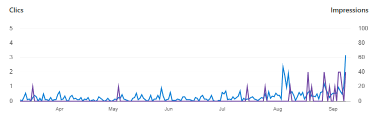 Et voici le trafic Bing d’après les Bing Webmaster Tools :