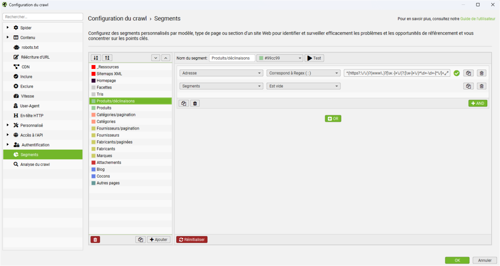 Principes fondamentaux de la segmentation dans Screaming Frog