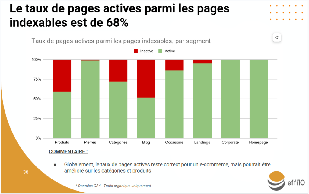 L’utilisation de segments permet de passer d’une observation globale à une analyse granulaire. En regroupant les pages par fonction (produits, catégories, articles, etc.), il devient possible de comparer leurs performances techniques, d’identifier des problèmes systémiques affectant un template de page particulier ou de valider que certaines sections du site, comme les facettes de navigation, sont bien exclues de l’indexation. La maîtrise de cette fonctionnalité est donc un prérequis pour mener des audits techniques approfondis et formuler des recommandations stratégiques pertinentes.
